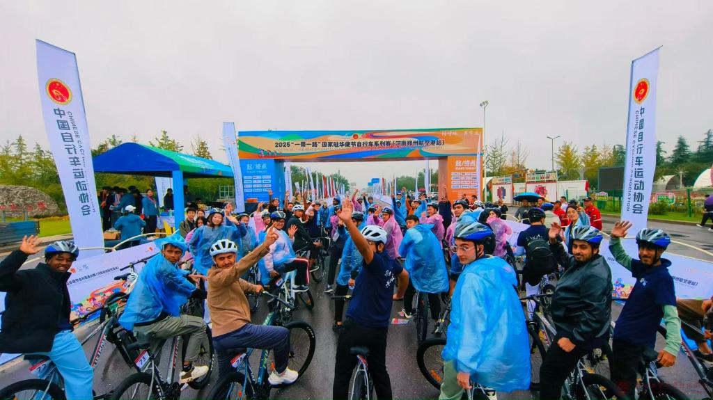 9月27日,由国家体育总局自行车击剑运动管理中心、中国自行车运动协会、河南省体育总会、郑州航空港经济综合实验区管理委员会主办的2025“一带一路”国家驻华使节自行车系列赛(河南郑州航空港站)在郑州航空港区双鹤湖中央公园隆重举办。郑州工业应用技术学院国际教育学院受邀组建参赛队伍,60 余名来自不同国家的留学生携手出征,与 “一带一路”沿线国家驻华使节、企业代表及骑行爱好者齐聚赛场,在绿色骑行中共享运动乐趣,为跨国文化交流与友好互动注入活力。